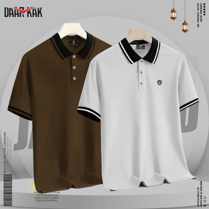 Premium Basic Polo Shirt Ash & Coffee Color - 1021